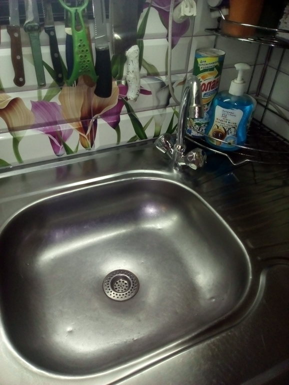 Меня зовут Наталья, я работаю соц.работником и иногда за день успеваю убрать 4 квартиры, поэтому на свою сил уже не хватает, со мной живут: двое любимых мужчин - муж и маленький сынок 7 лет(первоклассник), две улитки и мышка песчанка Пипа. Живем мы одной комнате , в общежитии.Мечтаю навести порядок во всём и расхламить свой рукодельный уголок.Раковину начистила, заодно помыла кухонный фартук.