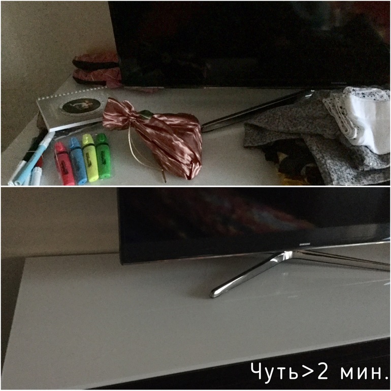 Самые "горячие точки" квартиры находятся конечно в детской))) Но дочка там убирает сама (в основном по субботам) , такие правила. Попробую ей предложить систему разбора ХС за 2 мин. (Потом напишу о результатах) Остальные ХС в квартире это: скамейка и комод в прихожей (захламляется моментально); прикроватная тумбочка, стиралка, комод под тв. Нелегко остановиться на 2 минутах, хочется закончить. Вот мои фотоотчетики по "горячим точкам":