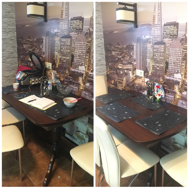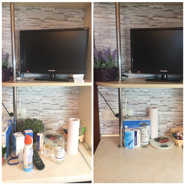 Я старалась убирать поверхностно)) Когда идеально убираю, все углы вымываю, то бывает целый день на это уходит. А потом как выжатый лимон, сил ни на что не остаётся. Но теперь с такими уборками покончено, лучше по пару минут в день. Как говориться тише едешь, дальше будешь))