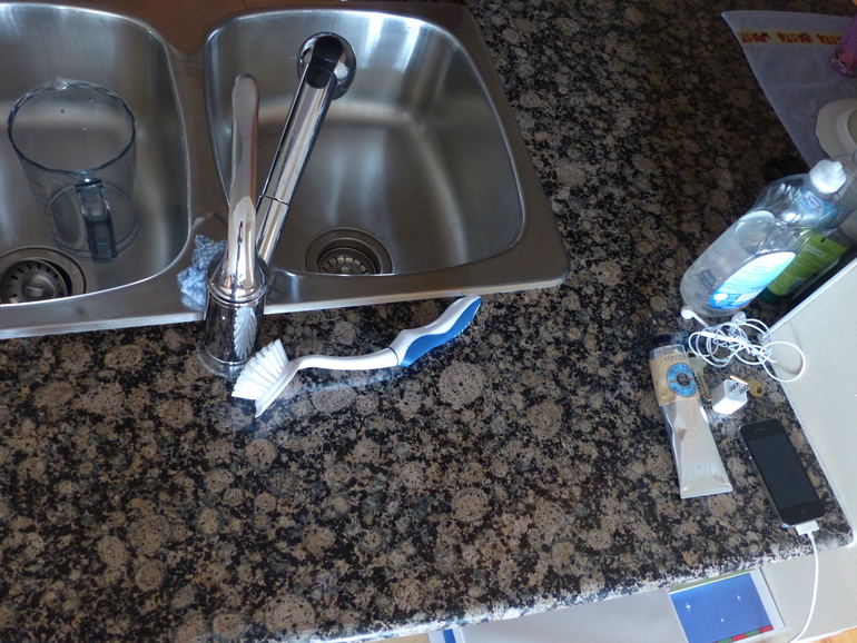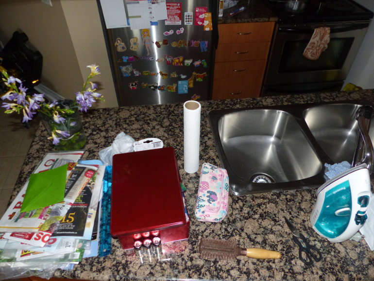 Самый большой и трудно убираемый хотспот это кухонный стол, он на пути из прихожей, так что все что принесли складывается сюда, плюс дочка любит положить свои поделки, мелочь какую то и.т.п.
