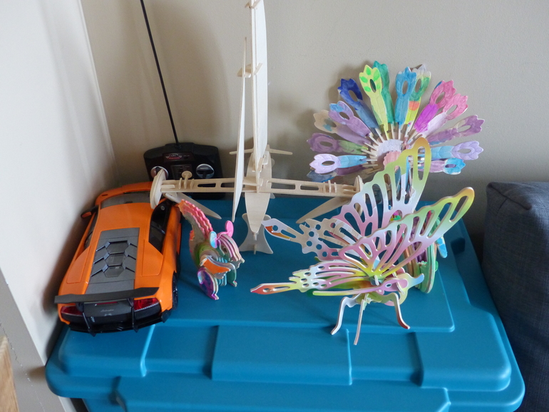 Фигурки не знаю куда деть и выкинуть жалко и ставить не понятно куда, пока здесь стоят, как и машина, потому что дочка её тут запускает. Но она постоянно пытается еще что то сюда сложить((