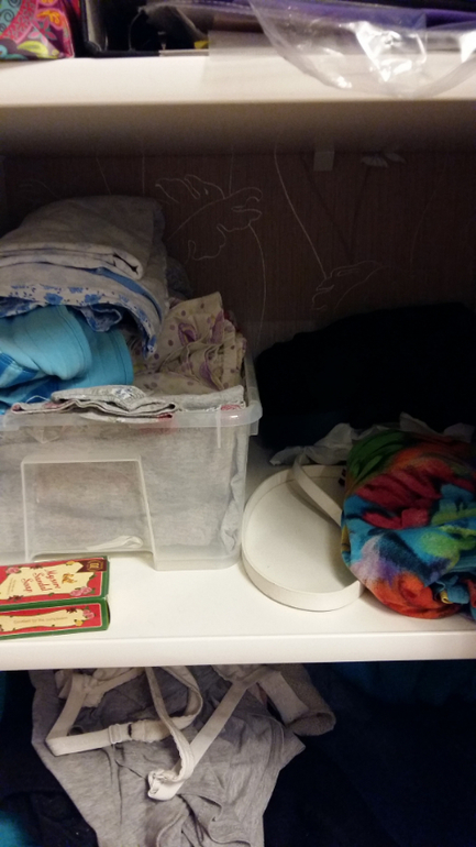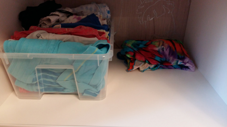 Осталась еще одна полочка, но там верхняя одежда (не нательная).