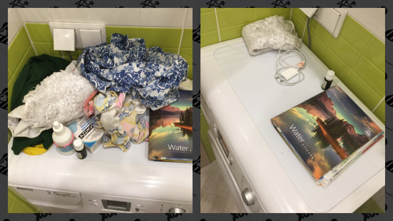А задание Келли - у меня нет хлама в туалете, в ванне выбросила несколько пузырьков.
