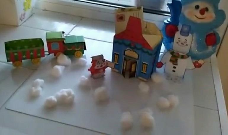 Это к нам приходил снеговик, помогал нам написать письмо деду морозу, а потом дети помогали ему добраться до почты. Там и зайка несет свое письмо, а снеговик-почтовик нас ждал. Письма ночью уехали на том зеленом поезде)))