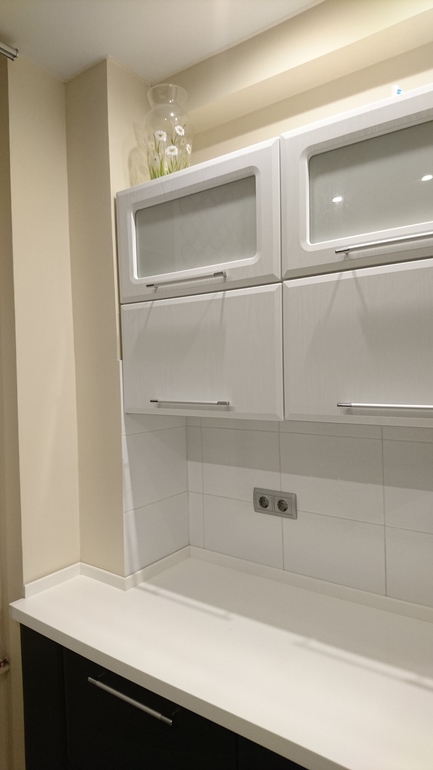 Ну, там на столешнице раньше стояла пароварка, кофеварка и тарелка с фруктами. И всё, вид не тот, все туда так и липло, хотспот образовывался. Теперб техника в шкафу и снова простор :-)