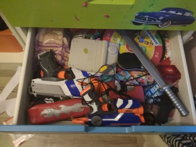 Уборка в детской, всё равно. что снег в снегопад чистить)