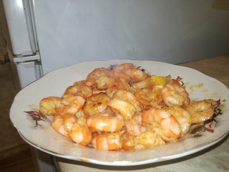 А еще побаловала мужа креветками жаренными