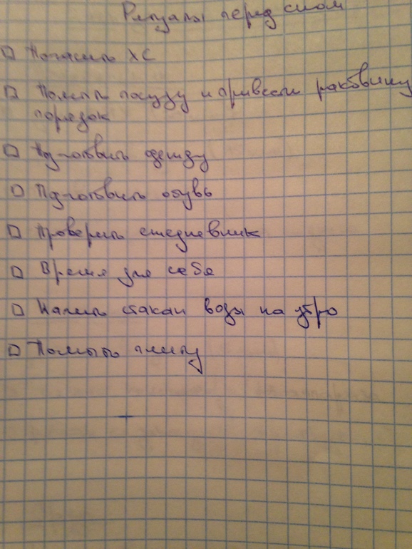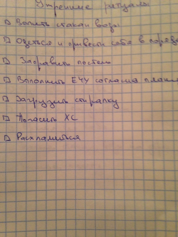 Отчитываемся по заданиямУ меня порядок Путин (рутин) пока остался неизменным, когда эти все вновь войдут в привычку то добавлю парочку