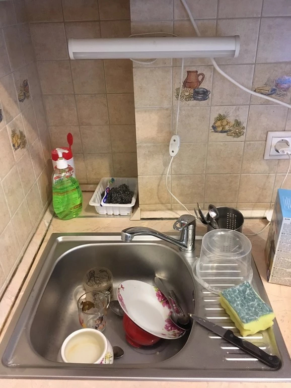 Дочка заценила чистую раковину, мы с ней тусим на больничном)