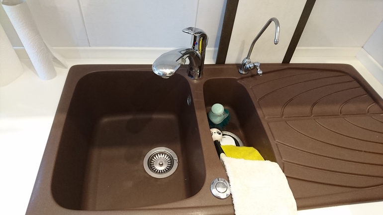 Столешница раньше была белая из ДСП, эта из искуственного камня. Шероховатости есть, но не критично. И отбеливается чистящими средствами спокойно.