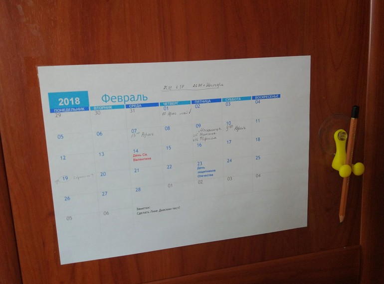 Наш календарь это распечатанная страница из Excel. У них в темах есть несколько календарей на выбор. Пользуемся таким календарем уже 2 года
