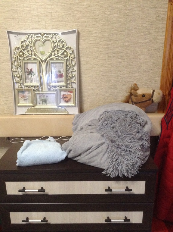 Вообще на этом комоде ничего быть не должно, но сейчас там стоит фоторамка(руки должны дойти фотки напечатать))) и от уголка отломилась верхушка, муж должен сделать через год))) тогда и убереться))