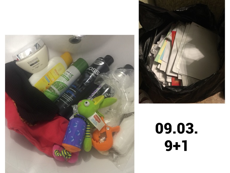 «Добыча» со второй ванной, плюс один за 9-е у меня куча разобранных документов по работе, которые наконец-то можно выкидывать, огромный мешок.