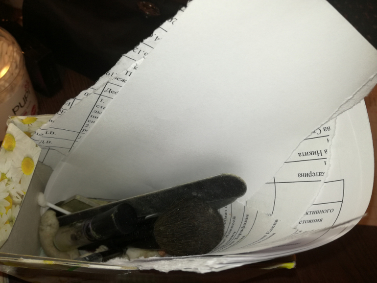 Замусоривание провела в косметичке и вещей у родителей дома, так как в один из дней будучи у родителей в гостях, мы с сестрой разобрали остатки моих вещей в моем шкафу и ее шкаф, как результат найдена новая косметичка с кистями, привезено несколько платьев, отдано несколько платьев сестре, 4 мешка определено на выброс и один в контейнер спасибо!!!!