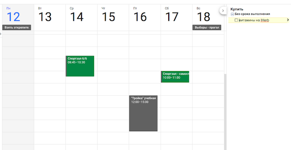 Вот так у меня выглядит календарь на эту неделю:
