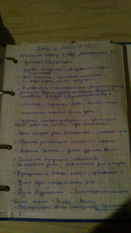 1 я так и не доделала, второй оставила вместе с бывшим мужем, очень он мне нравился, но в нём старая жизнь, а сейчас новая))) ну а 3 в процессе заполнения и охватывает все азы моей жизни. Сначала я хотела, чтобы кж - это кж, а планирование отдельно; но поняла, что удобнее будет носить кж с собой всегда и планирование будет тоже там, просто тетрадь на кольцах и листочки с планами на неделю и месяц будут в самом переде, а планы на день - в телефоне в приложении планировщике с галочками) Вообще для кж в начале марафона я брала обычную тетрадь, она всегда была со мной - и информация вся, и планы, и по делам хожу - что-то записать - достаю и всё.
