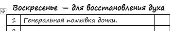 Накидала план себе. Пн- ечу Вт- зона Ср- зона, цветы Чт- холодильник, меню и закупка продуктов, зона Пт- ЕЧУ СБ - кот, могу вычесывать его только с мужем, день красоты ВС день семьи