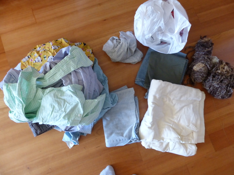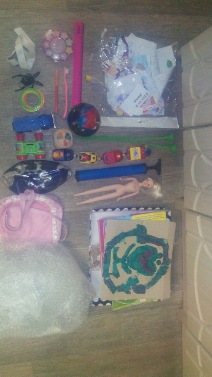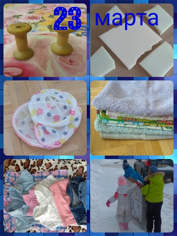 2 катушки и паралон ушел в сад на поделки. Полотенца -8 штук - в гараж на тряпки. Мешок для стирки, зарядное устройство и три коробки огромных (от телевизора, пылесоса и самоката) на мусорку (фото коробок нет, успела только сфотографировать как дети тащат коробку от телевизора, довольные... Ох вы бы нас видели 😂 дети прут коробку которая больше них, а сзади я с коляской и ещё двумя коробками, пытаюсь сфотографировать детей идущих впереди и то и дело с хохотом роняющих эту коробку)))))) одежда дочки - 7 предметов отдала племяннице. Идём дальше