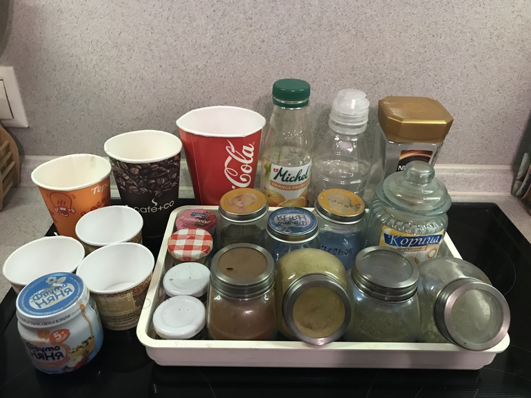 *очередная баночка от йогурта (где можно и нельзя ребенок их запрятала)