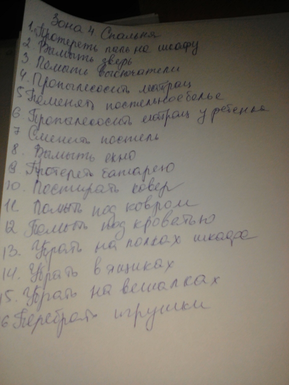 Забыла написать: ЕЧУ - поменяла постель и полотенца, протерла зеркала. Немного распланировала следующую неделю.