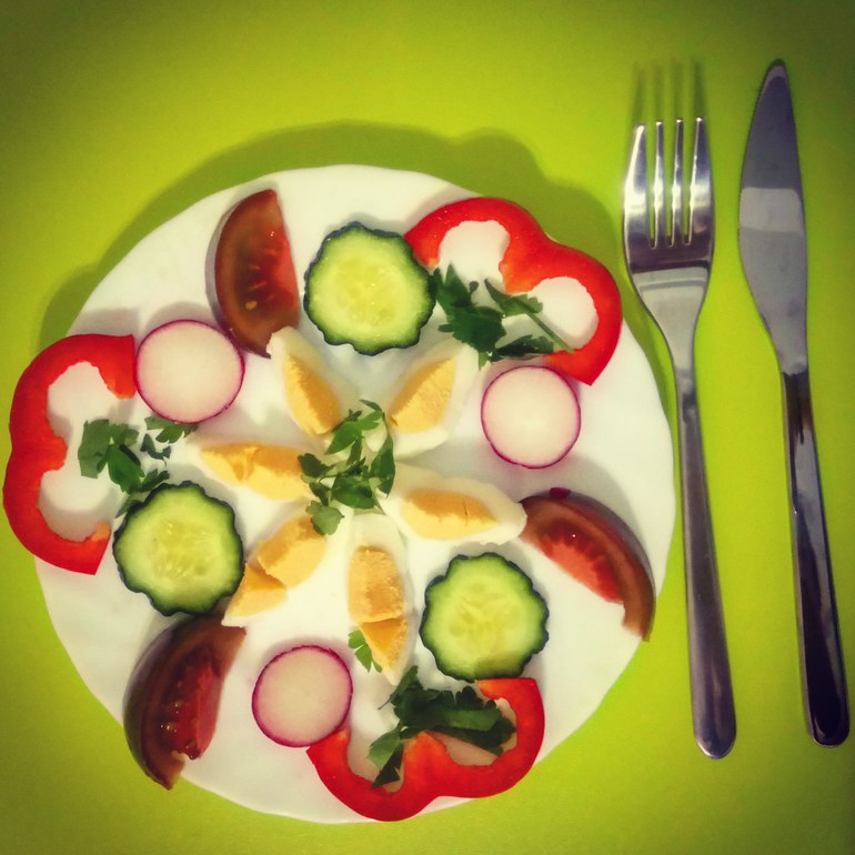 Завтракали бутербродами и амлетом. В обед я доедала вчерашнего е манты, а дети ели суп, (варила сегодня перед работой). Ужинали им же, я на работе вечером брала с собой салат овощной.