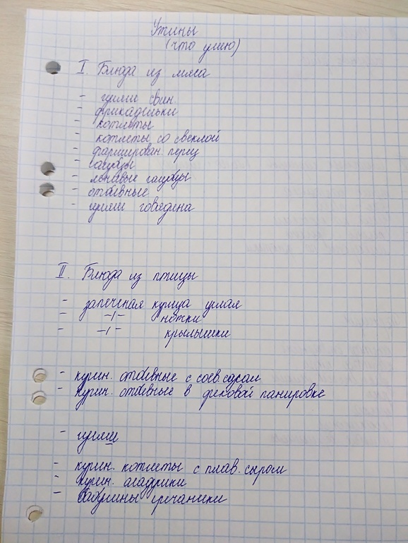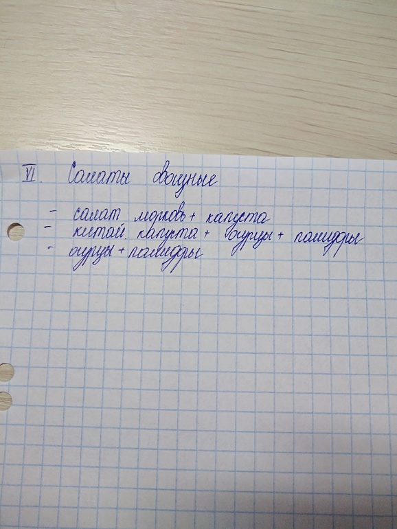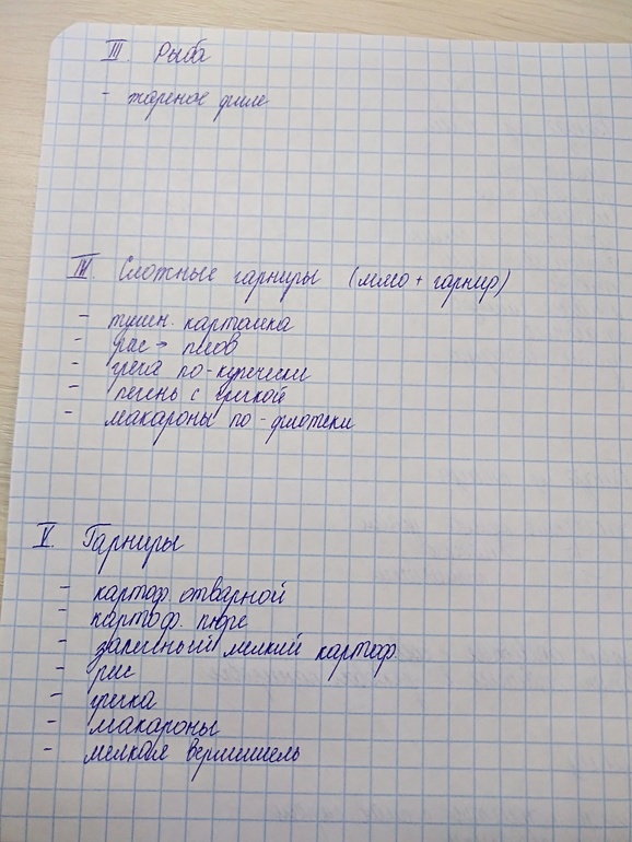 2. Пишем список блюд на ужин, я привела пример своих категорий, можно взять свои или писать одним списком, без категорий. Если блюда уже были перечислены в обеденных, так и пишем: см. «гарниры, обед»