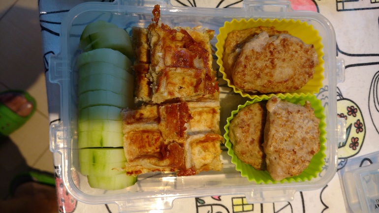 Белковое: рыбу давать с собой очень боюсь. Ибо старший уходит в 7 и возвращается в 7, ему собираю несколько перекусов.