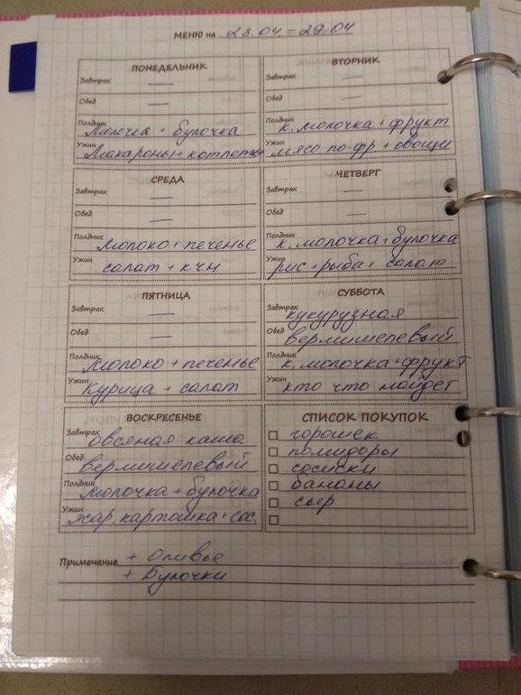 Я заметила, что многие уже планируют меню на неделю, записывая конкретные блюда. Хорошо!