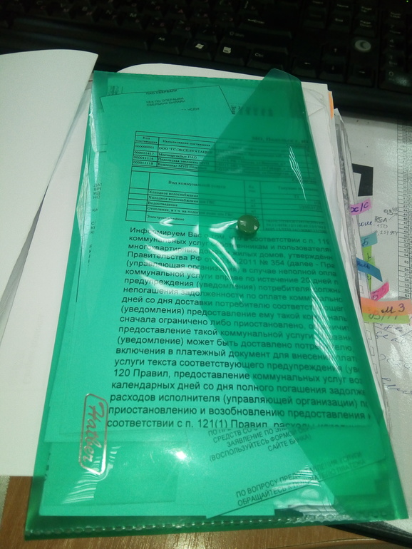 В нем лежит небольшой конверт, где я храню текущие квитанции, талоны на прием к врачу и другую текущую лабуду