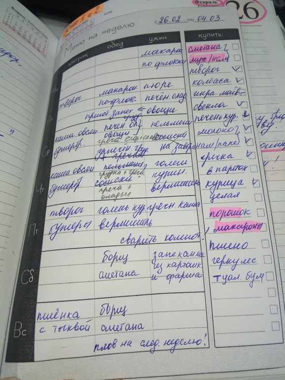 Я пытаюсь планировать меню, записываю список покупок, что кончилось