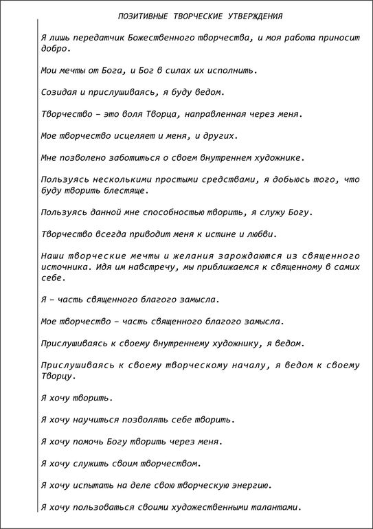 10. Перечитайте эту книгу. Поделитесь впечатлениями с другом. Помните, что чудо - это когда один художник делится с другим. Доверяйте Богу. Доверяйте себе.