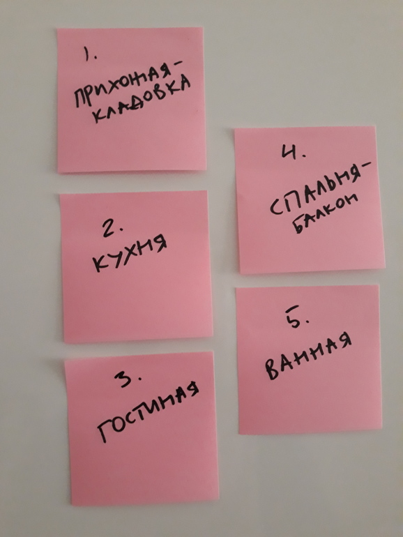 Задание заключается в том, чтобы решить, какое разделение будет вам удобно. Есть у вас есть дополнительные помещения (у меня, например - Тамбур), решите, к какой из зон вы его присоедините. Три самых объемных зоны лучше расположить в середине месяца, зоны поменьше пронумеровать как 1-ю и 5-ю.