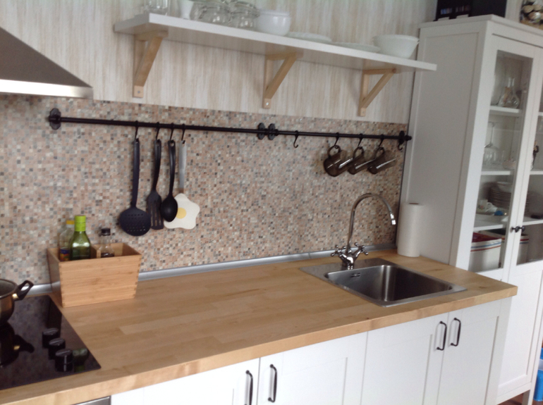 Ну и еще пара фишек из Икеа. Очень помогает держать порядок. Крепится под раковину на любой шкаф, не обязательно Икеа. Последний выдвигается.