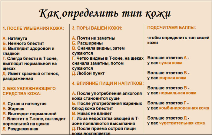 Несомненно, очень важно определить свой тип кожи, чтобы подобрать средства по уходу. Тебе поможет в этом вот такой маленький тестик: