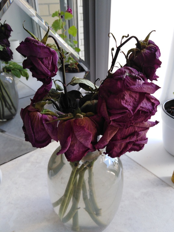 А дальше кормлю мусоропровод... В хлебнице нашла кошмар недельный и на столе незаметно стоят цветы с выписки...