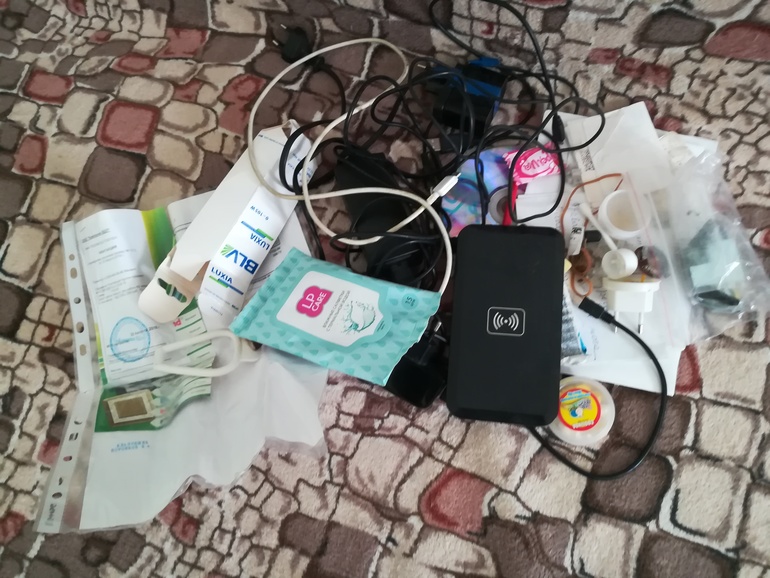 Из значительного - 4 старых неработающих или не подходящих ни к чему зарядки, парочка проводов, 2 диска, и мелочевка всякая, типа коробка, упаковки салфеток, старой жвачки и пр. Думаю 22 вещи наберется