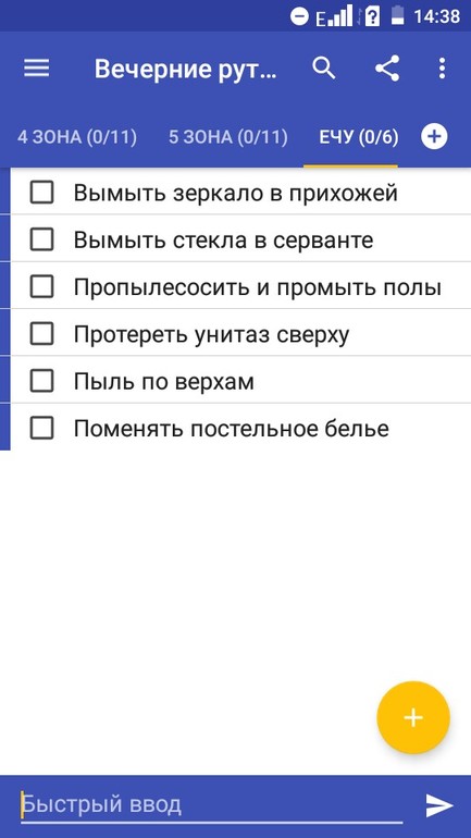 Также определись с заданиями для этой поверхностной уборки. До Марлы мне еще далеко, поэтому мой список дел такой: