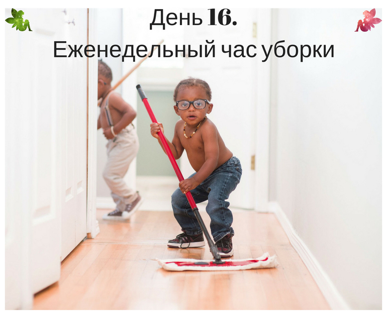У тебя есть выбор, как проводить свой ЕЧУ. Если ты работаешь или у тебя очень мало свободного времени, то удобней будет разделить его на три дня по 20 минут или четыре дня по 15 минут. Или же уделить уборке целый час в один день. Решать тебе.