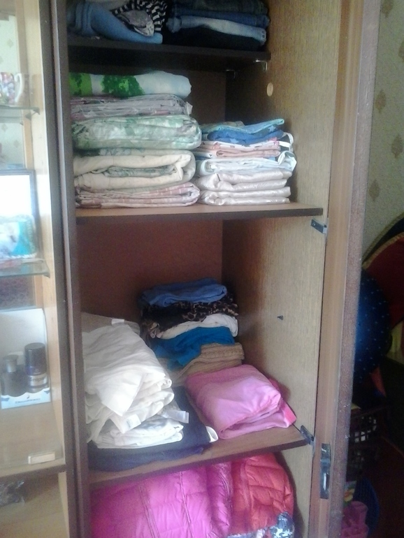 на самом деле этот шкаф у меня вообще какой то неудобный, такие высокие и маленькие полки, что даже если аккуратно всё сложить,найти и достать что то потом так, чтобы сохранился порядок, практически нереально :( свои вещи храню в комоде. Муж в другом. А этот шкаф используется у меня, как склад вещей, которые либо малы, либо для тех, которыми я не пользуюсь, но выбросить мы его не можем, т.к. за ним обои не поклеены.