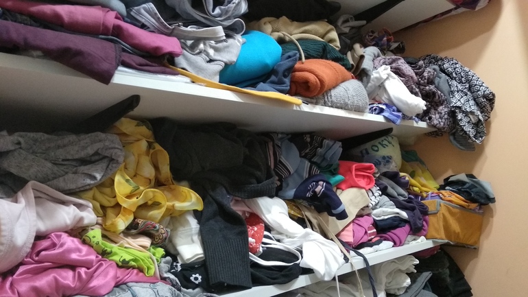 Когда не могу найти нужную вещь, то чаще она в торопях запихивается обратно кое как. И происходит такое. Но ладно хоть месяца на 2 порядка хватает.