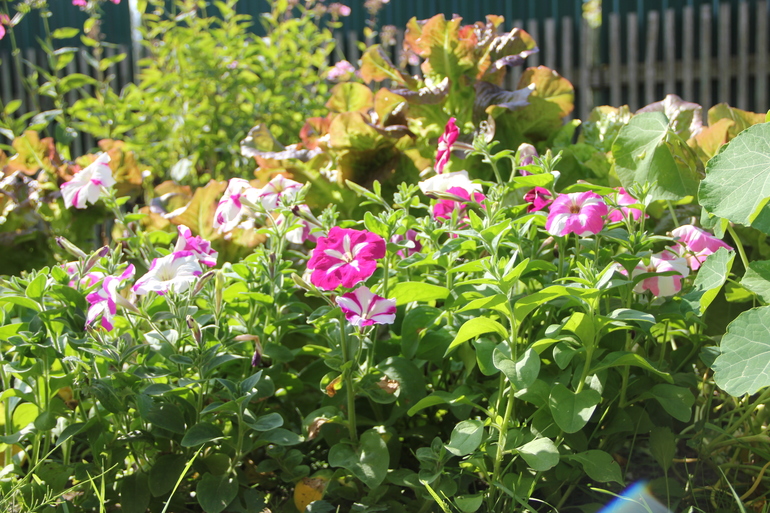 Я наткнулась на небольшой пост про украшение клумбы салатом. Попробовала.