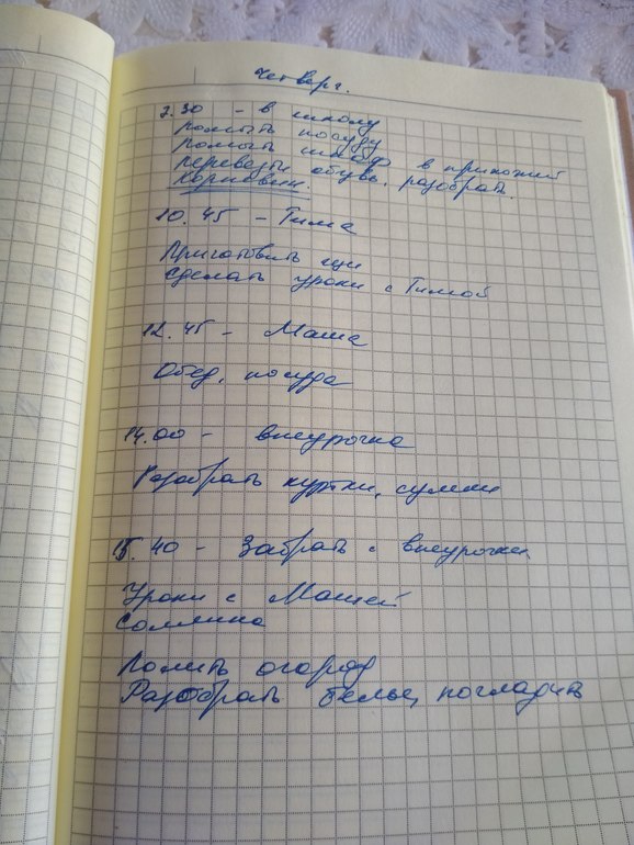 Списки дел пишу всегда, летом без расписания, сейчас с привязкой ко времени