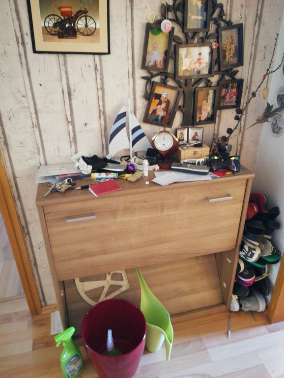 Мне кажется на входе ХС есть у всех - причем чем семьябоьше, тем и пылает оно ярче. У нас в прихожей тоже полка - на одном из взлетов посоветовали корзинки поставить туда - под шарфы/шапка/варежки . Летом там еще ничего-всего ж мало... сейчас с ужасом жду, когда достану все осенне - зимнее - и опять начнутся там горы в корзинках, и вокруг