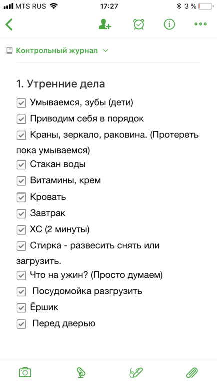Не позволяйте перфекционизму мешать Вам! Просто напишите! У каждого получится свой личный список утренних и вечерних рутин. И заглядывайте туда, когда понадобится.
