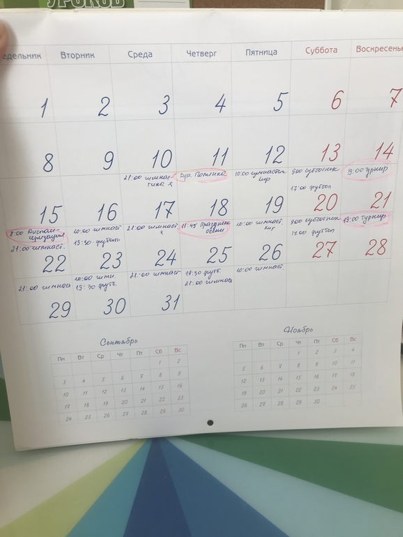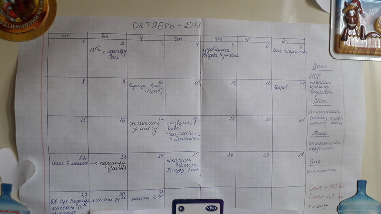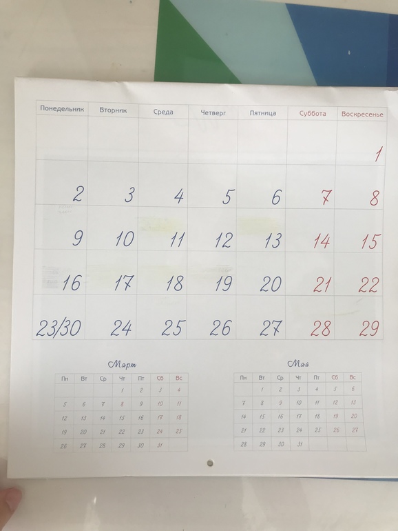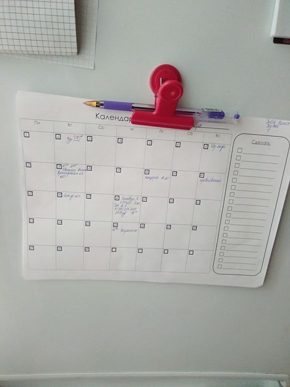 Я раньше думала, зачем мне календарь? Я все прекрасно помню. Так вот, теперь у меня 2 календаря! Один висит на холодильнике, там я пишу время тренировок, кому, когда к врачу, и прочие семейные мероприятия. В КЖ у меня мини версия, там я отмечаю важные для меня заметки, когда обработать цветы и котам дать лекарства. То, что другим знать необязательно, но я, даже если и забуду, сразу по записям посчитаю, когда/что/где.