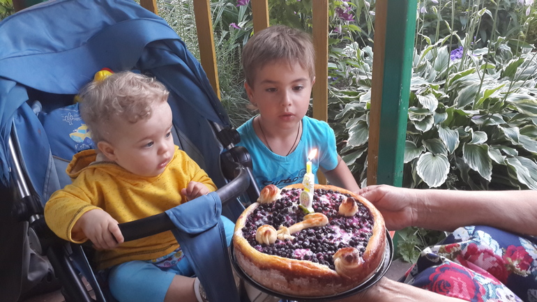 А совсем Хюгге этоу нас у бабушки - на все ДР бабуля печет пироги - благо лето, поэтому - Илюше годик -