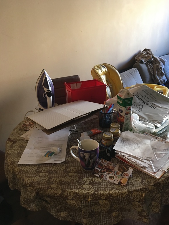 ХС у нас становиться любая поверхность свободная, даже спинки стульев, батареи. Вот несколько из них, до и после. Кстати параллельно решаються и другим проблемы, вместе с разбором стола, собрала партвель ребенка в школу.