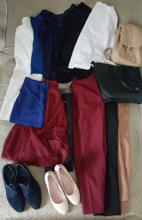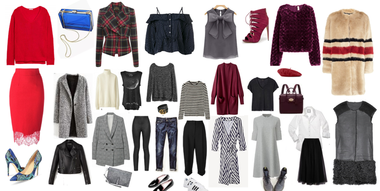 ✍️Ниже для примера я подобрала вещи акцентной группы и разместила их по периметру базового гардероба. Вещей получилось много, это для большей наглядности и демонстративности.