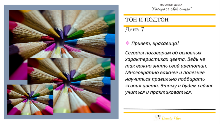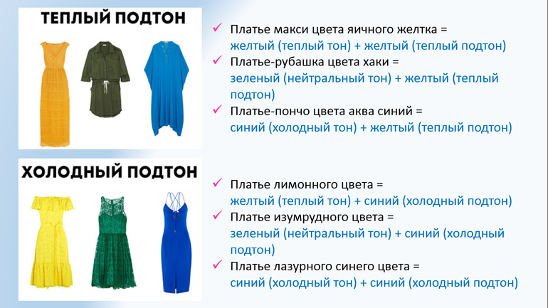✍️Дело в том, что у каждого цвета есть тон и подтон. Тон - это основной хроматический цвет, его мы видим сразу. Подтон -то, что делает его теплым или холодным, то есть цветовая добавка. Если добавить желтый к любому цвету, то это сделает его теплым, а если добавить синий, то цвет похолодеет. Вот эти добавки ты и должна научится различать. Я покажу несколько примеров, затем будем тренироваться самостоятельно.