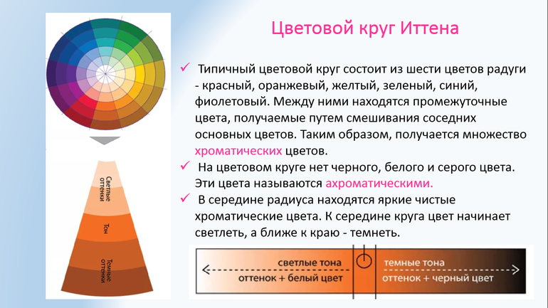 ХАРАКТЕРИСТИКИ ЦВЕТА. ЦВЕТОВОЙ КРУГ